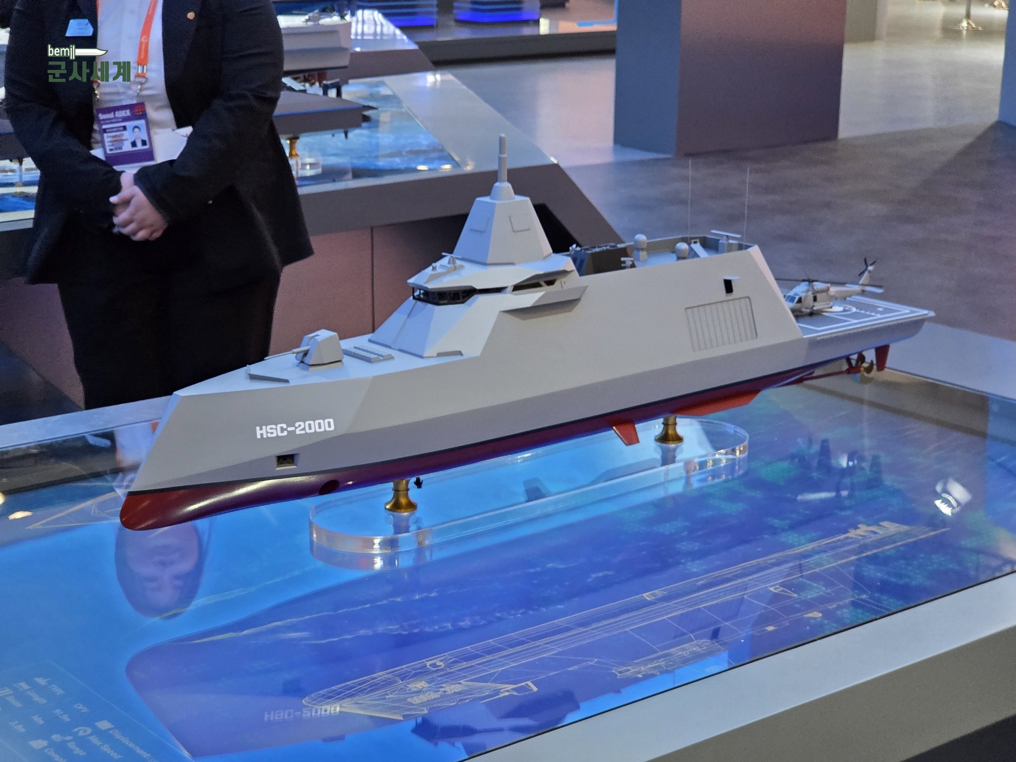 Η τεχνητή νοημοσύνη και η ανεστραμμένη πλώρη είναι επίσης χαρακτηριστικά ενός μικρότερου πλοίου που παρουσιάστηκε στο ADEX, του Smart Battleship ή HSC-2000, ενός περιπολικού σκάφους ανοιχτής θάλασσας επόμενης γενιάς 2.000 τόνων. Το σχήμα stealth θυμίζει αυτό του Ocean-74FN, με τα όπλα που είναι ορατά στο μοντέλο να περιλαμβάνουν ένα πυροβόλο 76 χιλιοστών τοποθετημένο στην πλώρη ακολουθούμενο από έναν κάθετο εκτοξευτή 2 x 8 κυψελών μπροστά από την υπερκατασκευή, που μπορεί να είναι το σύστημα αεράμυνας MBDA VL MICA. Στην κορυφή της υπερκατασκευής, βρίσκουμε δύο δίδυμους εκτοξευτές για πυραύλους κατά πλοίων, πιθανώς από το Kongsberg, ενώ το πρυμναίο κατάστρωμα πτήσης μπορεί να χειρίζεται ελικόπτερα της κλάσης Seahawk. το μικρό υπόστεγο δεν μπορεί να φιλοξενήσει επανδρωμένα αεροσκάφη και χρησιμοποιείται για UAV, ενώ ο χώρος αποστολής στη δεξιά πλευρά μπορεί να χρησιμοποιηθεί για την εκτόξευση μη επανδρωμένων επιφανειακών και υποβρυχίων σκαφών, καθώς και RHIB. Αυτές οι μη επανδρωμένες πλατφόρμες λειτουργούν σε στενή συνεργασία με το πλοίο χάρη σε μια λύση MUM-T που αναπτύχθηκε από την Hanwha, και ενισχύουν την επιβιωσιμότητα του HSC-2000, αυξάνοντας την εμβέλεια αναγνώρισης καθώς και το θανατηφόρο βεληνεκές του.
