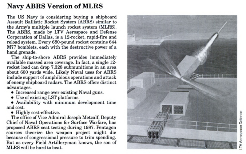 Υπήρχαν την δεκατία του 1980 πολλές ιδέες για ναυτικούς εκτοξευτές με ρουκέτες κατευθυνόμενες και μη.