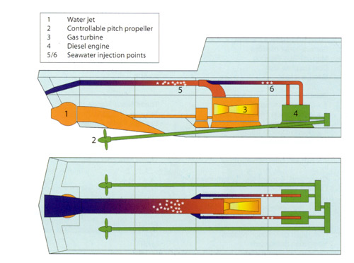 Το πλοίο έχει πολλά πλεονεκτήματα και ιδιαίτερα με την κίνηση και με έλικες και με υδροστρόβιλους. Το άλλο μεγάλο πλεονέκτημα είναι οι εξαγωγές των καυσαερίων που βγαίνουν κάτω από την ίσαλο, με αποτέλεσμα το πολύ χαμηλό θερμικό ίχνος. Το ίδιο σύστημα είχαν οι κορβέτες του Γιάννη Τζαγκαράκη της ALS NSD, με αποτέλεσμα τον μεγάλο αριθμό VLS ΜΚ-41 και μετά ΜΚ-41 & ExLS που είχαν.