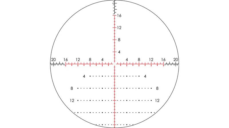 Η κλίμακα του σταυρονήματος EBR-7D παραμένει ανάλογη με την εικόνα κατά τη μεγέθυνση. Οι σταθερές υποδιαιρέσεις επιτρέπουν ακριβείς διορθώσεις και υπολογισμούς αποστάσεων σε όλες τις μεγεθύνσεις, ενώ το EBR-7D είναι ιδανικό για βολές μεγάλου βεληνεκούς.