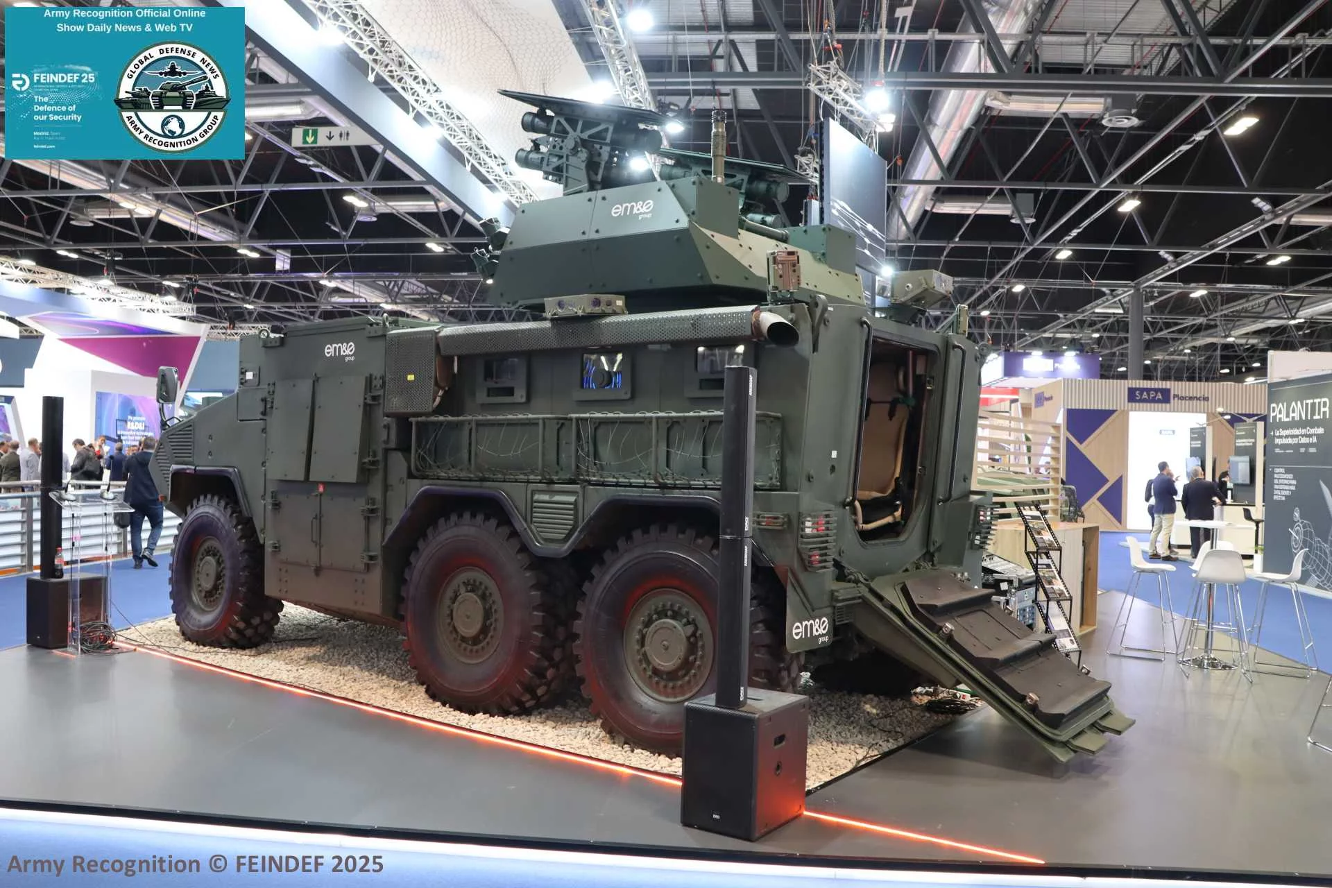 Στην φωτογραφία εμφανίζεται το τεθωρακισμένο όχημα FEROX 6x6 της ισπανικής εταιρείας EM&E Group.
