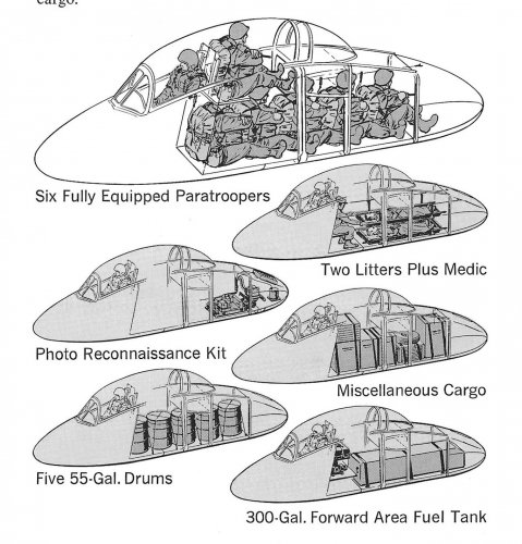 Ο οπλισμός μεταφέρεται σε πολλούς φορείς κάτω από το φτερό και την άτρακτο. Πλήρωμα 2 σε σειρά, 8 εξοπλισμένοι στρατιώτες ή άλλο φορτίο μπορούσαν να μεταφερθούν στην άτρακτο.