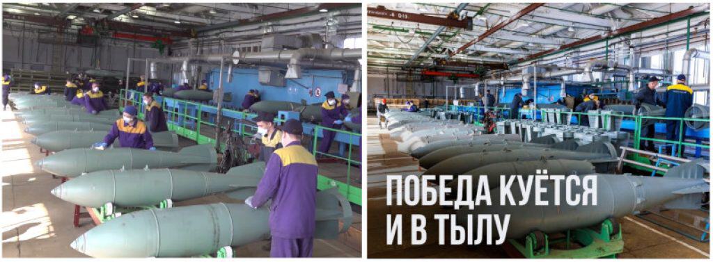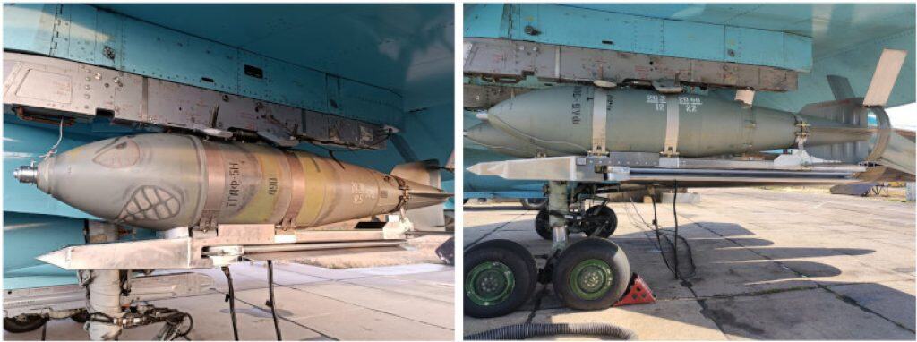 Βόμβες FAB-500 M-62 (αριστερά) και FAB-500 T (δεξιά) σε παραγωγή στο εργοστάσιο Sverdlov στο Dzerzhinsk. Δημοσιεύτηκε από το ρωσικό Υπουργείο Άμυνας τον Απρίλιο του 2023 και τον Μάιο του 2024, αντίστοιχα. Την ίδια ημέρα που δημοσιεύθηκαν οι δηλώσεις του Skibitskyi, εμφανίστηκαν στα μέσα κοινωνικής δικτύωσης βίντεο που έδειχναν Ουκρανούς σκαπανείς να εξουδετερώνουν μια μη εκραγείσα βόμβα FAB-500 T εξοπλισμένη με ένα νέο, πιο εξελιγμένο σύστημα.