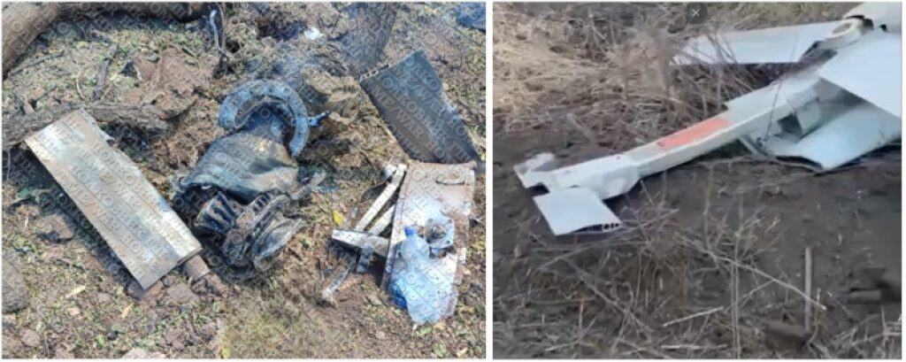 Αριστερά: Μια φωτογραφία που φέρεται να δείχνει ερείπια ενός UMPK με κινητήρα τζετ που ανακτήθηκε στην Ουκρανία στα μέσα του 2025, δημοσιεύτηκε από το κανάλι Telegram Polkovnik GSh στις 18 Οκτωβρίου 2025. Δεξιά: Ένα στιγμιότυπο οθόνης από ένα βίντεο που δείχνει τα ερείπια μιας βόμβας σειράς RBK-500 εξοπλισμένης με UMPK, δημοσιεύτηκε από τον Serhii Beskrestnov στις 15 Μαρτίου 2024.