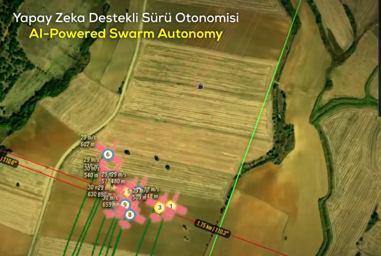 Συντονισμός επίθεσης και καθοδήγηση προς τους στόχους με ΑΙ. Το σμήνος, το οποίο δοκιμάστηκε στο πεδίο εκπαίδευσης Keşan στην Αδριανούπολη της Τουρκίας, αποτελούνταν από πέντε drones K2 Kamikaze και δέκα Moskit, καθώς και drones επίθεσης Bayraktar TB2, TB3 και AKINCI. Δηλαδή επειδή έχουν διαφορές στην ταχύτητα πέταξαν αυτόνομα και ενώθηκαν σε ένα σμήνος με την καθοδήγηση από τα μεγαλύτερα AKINCI. Στην πράξη δοκίμασαν επίθεση σε Ισραήλ και Ελλάδα βαθιά μέσα στην ενδοχώρα με τα καμικάζι drone να αποτελούν τα δολώματα που θα καταστρέψουν τα αντιαεροπορικά συστήματα, δηλαδή οι πύραυλοι του εχθρού. Μετά τα υπόλοιπα UAV θα εκτοξεύσουν όπλα με εμβέλεια μεγαλύτερη των 100 χιλιομέτρων για να καταστρέψουν τα αντιαεροπορικά συστήματα και θα τα αποτελειώσουν με μικρότερους πυραύλους και μίνι κρουζ.