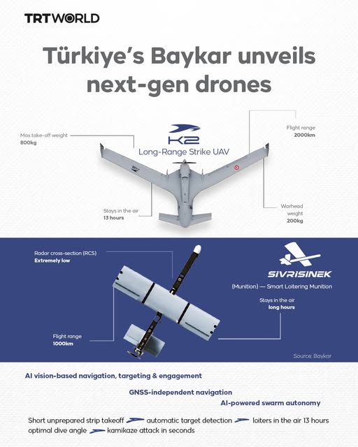 Τα νέα UAV καμικάζι K2 της Baykar που προσφέρουν μια νέα προσέγγιση ολοκλήρωσαν μια δοκιμή πτήσης που περιελάμβανε αυτόνομη πτήση σμήνους και αεροπορική περιπολία, συνοδευόμενα από ένα UCAV AKINCI.