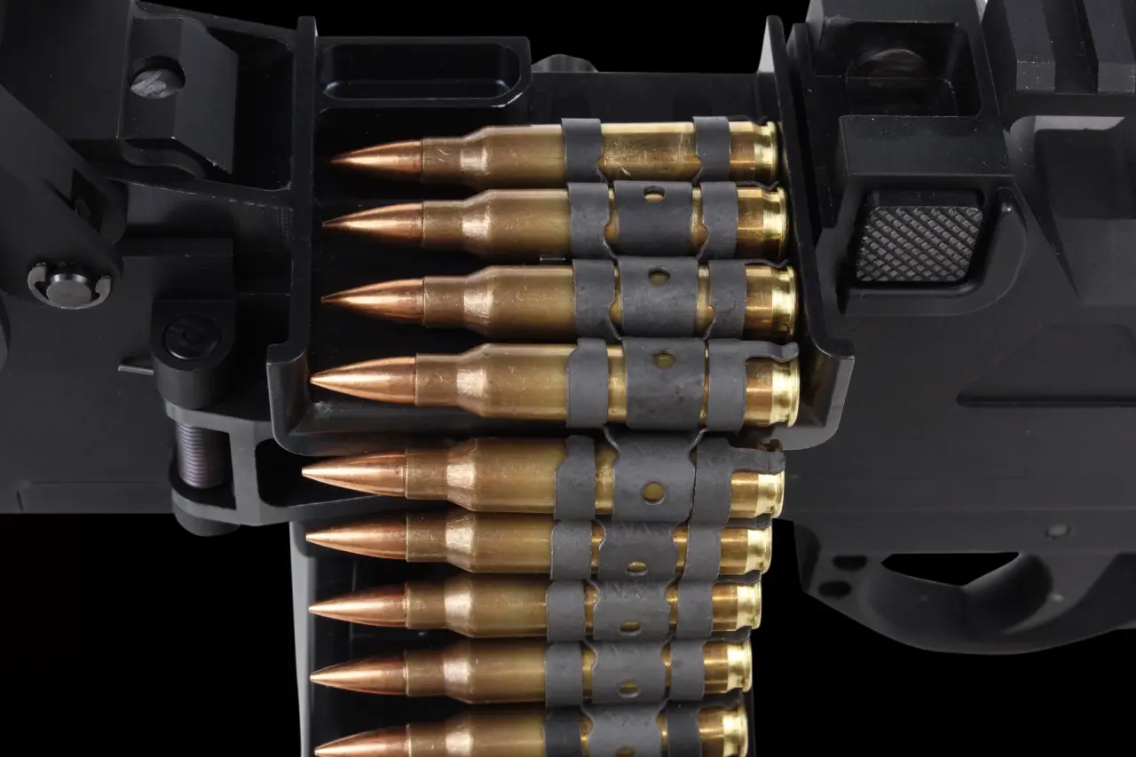 Το πολυβόλο χρησιμοποιεί τυπικές διασπορές ζώνες ΝΑΤΟ. Τα πυρομαχικά τροφοδοτούνται από τα αριστερά. Οι χρησιμοποιημένες ζώνες εκτοξεύονται μέσω μιας ειδικής θύρας πάνω από τη θύρα εκτόξευσης. Ζώνες ποικίλης χωρητικότητας προσφέρονται για μεταφορά σε μαλακή θήκη που είναι προσαρτημένη κάτω από τον κορμό.