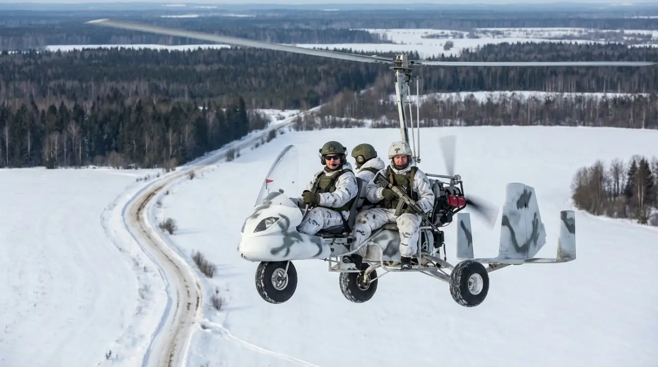 Η ασυνήθιστη ιδέα σε αυτό το έργο είναι ότι ο συγγραφέας προτείνει τη χρήση φθηνών αυτόγυρων όχι ως μέσο εντοπισμού ειδικών δυνάμεων, αλλά ως εργαλείο τακτικής προσγείωσης μικρών ομάδων επίθεσης και πλατφόρμας μεταφοράς με αποδεκτές απώλειες - ακόμη και αφήνοντας το αεροσκάφος στο σημείο προσγείωσης μετά την προσγείωση.