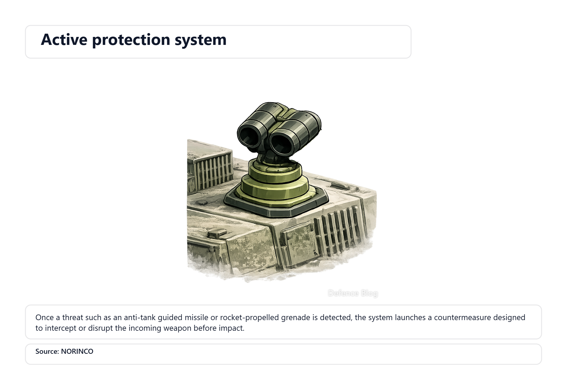 Τα άρματα μάχης τρίτης γενιάς είναι πλέον εξοπλισμένα με ένα σύστημα για την αντιμετώπιση επιθέσεων με drones και αντιαρματικών πυραύλων. Φωτογραφία: Weibo/China Youth Daily