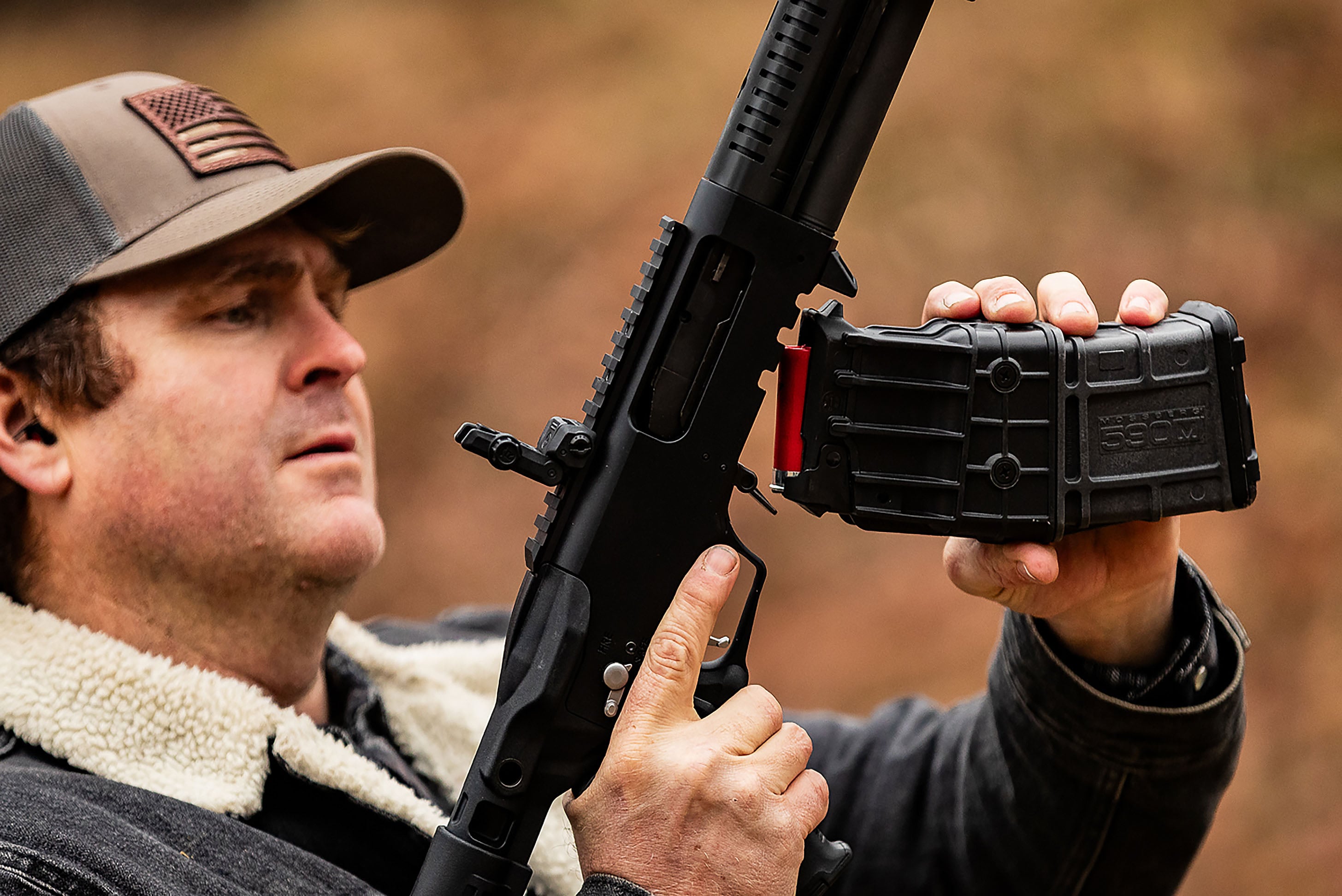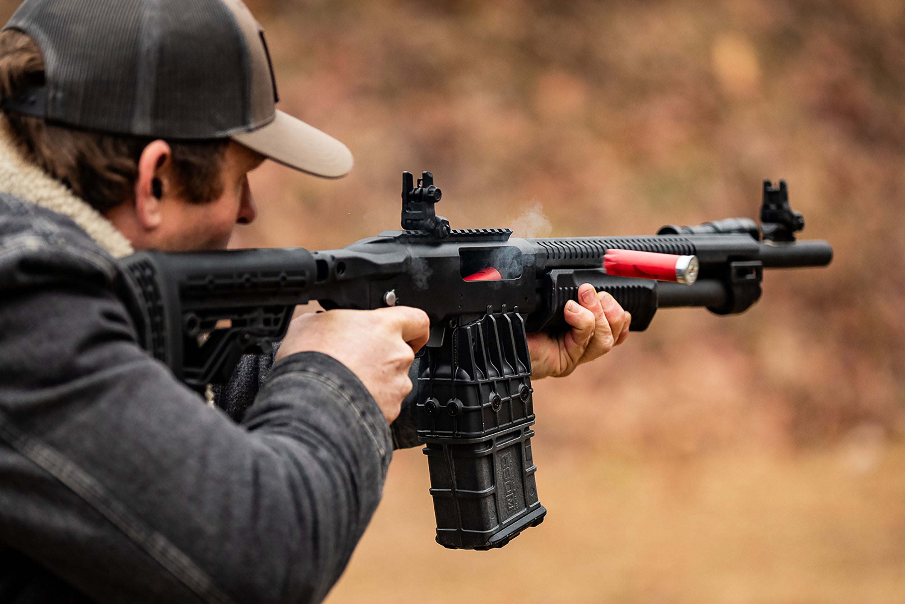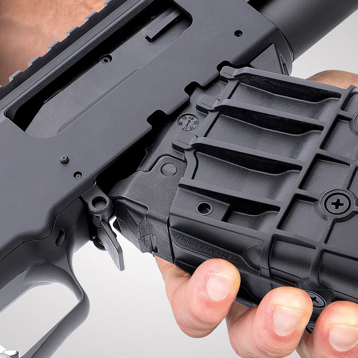 Κατασκευασμένα για υψηλές επιδόσεις, τα σταθεροποιητικά νεύρα στον γεμιστήρα εμπλέκονται με τον δέκτη 590RM και παρέχουν ασφαλές κλείδωμα, ενώ η απελευθέρωση και ο οδηγός του γεμιστήρα σε σχήμα μοχλού κάνουν την τοποθέτηση και την επαναφόρτωση πανεύκολη.