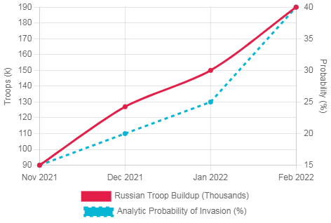 Μέχρι τα τέλη του 2021, προέκυψε μια τεράστια στατιστική απόκλιση μεταξύ των συλλεγόμενων πληροφοριών και της αναλυτικής ερμηνείας. Ενώ οι αξιολογήσεις των ΗΠΑ ενσωμάτωσαν δορυφορικές εικόνες που επιβεβαιώνουν 127.000 στρατιώτες στα σύνορα, η δημόσια ανάλυση απέρριψε σε μεγάλο βαθμό αυτό ως εξαναγκασμό.
