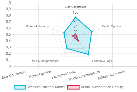 Αποτέλεσμα: Ένα μοντέλο «Λογικού Δράστη» εφαρμόστηκε σε μια «Περσοναλιστική Δικτατορία», οδηγώντας σε υποεκτίμηση της πρόθεσης κινδύνου κατά 20-25%.