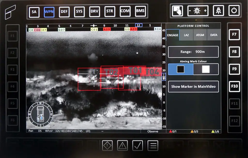 Ο κυβερνήτης και ο πυροβολητής μπορούν να παρατηρούν ανεξάρτητα το περιβάλλον μέσω του SEOSS Sector και του SEOSS Panorama και να εντοπίζουν αξιόπιστα αντικείμενα σε απόσταση έως και 5.000 μέτρων. Για ολοκληρωμένο οπτικοακουστικό προσανατολισμό, ο κυβερνήτης μπορεί να έχει πρόσβαση στην καταπακτή. Το σύστημα σφαιρικής αναγνώρισης 360°, το σύστημα προειδοποίησης λέιζερ και η ακουστική πλατφόρμα ενημερώνουν ενεργά το πλήρωμα για πιθανούς κινδύνους και υποδεικνύουν την πηγή τους.