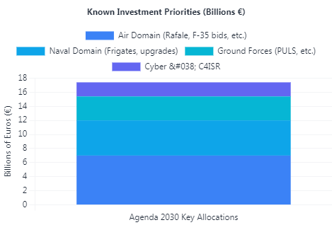 ΤΑΜΕΙΑ ΑΝΑΚΑΤΑΣΤΑΣΗΣ ΤΗΣ ΕΕ 30 δισεκατομμύρια ευρώ Ταμεία NextGenerationEU (2021–2026), με το 25% να προορίζεται για υποδομές γειτονικές με την άμυνα. Ατζέντα 2030: Βασικές Κατανομές Προμηθειών