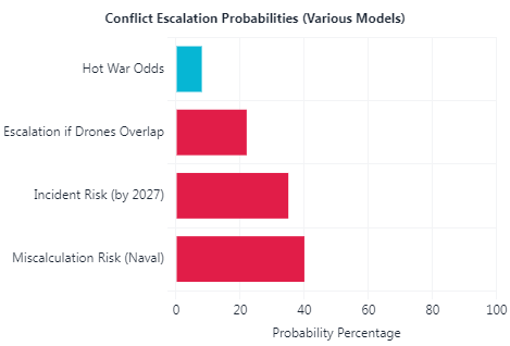 Οι διμερείς γραμμές βοήθειας (2020, 150 ενεργοποιήσεις) μετριάζουν τους λανθασμένους υπολογισμούς, αλλά η σηματοδότηση PULS επιβάλλει τις κόκκινες γραμμές κατά των εισβολών μη επανδρωμένων αεροσκαφών (TB2 150 χλμ.). Προέλευση: Σύγκρουση το 2020 (χωρίς θύματα). Απόκλιση: Ασύμμετρη (τουρκικός όγκος). Μηχανισμός: <2 δευτερόλεπτα καθυστέρηση· διπλό: ΝΑΤΟ (2020), SIPRI (2020). Επίπτωση: 65% αποκλιμάκωση.