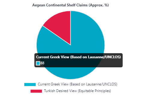 Η αντιπαλότητα Ελλάδας-Τουρκίας ανάγεται στη διάλυση της Οθωμανικής Αυτοκρατορίας μετά τον Α' Παγκόσμιο Πόλεμο, όταν η Συνθήκη της Λωζάνης του 1923 οριοθέτησε τα σύνορα, αλλά άφησε ανεπίλυτες ασάφειες στο Αιγαίο Πέλαγος σχετικά με την κυριαρχία των νησιών, τα χωρικά ύδατα και τα δικαιώματα υφαλοκρηπίδας. Επειδή η συνθήκη εκχώρησε 235 κατοικημένα και 1.200 ακατοίκητα ελληνικά νησιά στο Αιγαίο - που αποτελούν το 20% της επιφάνειας της θάλασσας - χωρίς να διευκρινίσει τα θαλάσσια δικαιώματά τους, η Άγκυρα αργότερα αμφισβήτησε αυτές τις κατανομές ως καταπατήσεις της παράκτιας πρόσβασής της σε πόρους υδρογονανθράκων και αλιεία. Η απόκλιση εμφανίστηκε τη δεκαετία του 1950, όταν η Τουρκία άρχισε να διεκδικεί ελληνικά νησιά όπως τα Ίμια (γνωστά ως Kardak στα τουρκικά), υποστηρίζοντας ότι η εγγύτητα με την ηπειρωτική χώρα της Ανατολίας (μόλις 2 χλμ. για ορισμένες νησίδες) δικαιολογούσε κοινές ή ακυρωμένες αποκλειστικές οικονομικές ζώνες (ΑΟΖ). Μηχανισμός: Η Τουρκία επικαλέστηκε τις αρχές της δικαιοσύνης βάσει του εθιμικού διεθνούς δικαίου, απορρίπτοντας πλήρεις επεκτάσεις 200 ναυτικών μιλίων για τα νησιά, οι οποίες θα μείωναν την υφαλοκρηπίδα της στο Αιγαίο από 88% σε 16%, σύμφωνα με διμερείς διαπραγματεύσεις που τεκμηριώθηκαν το 1975. Επίπτωση: Αυτή η θεμελιώδης διαμάχη στρατιωτικοποίησε το Αιγαίο, ωθώντας την Ελλάδα να ενισχύσει τα ανατολικά νησιά με πυροβολαρχίες πυροβολικού μέχρι το 1960, κλιμακώνοντας την πυκνότητα των περιπολιών σε καθημερινές υπερπτήσεις από τουρκικά F-4 Phantom, με 1.500 παραβιάσεις να καταγράφονται ετησίως μέχρι το 1987. Ένας υπεύθυνος χάραξης πολιτικής στο Βελιγράδι διακρίνει εδώ τους σπόρους της ευπάθειας των πλευρών του ΝΑΤΟ. Ένας ελεγκτής της Ζυρίχης υπολογίζει το ετήσιο κόστος περιπολίας των 500 εκατομμυρίων δολαρίων ως δημοσιονομικό βάρος και για τις δύο οικονομίες. Ένας βοτανολόγος στο Κουνμίνγκ σημειώνει παραλληλισμούς με τα αμφισβητούμενα παραποτάμια σύνορα, όπου οι αξιώσεις προς τα πάνω (Τουρκία) περιορίζουν τις αποδόσεις προς τα κάτω (Ελλάδα).