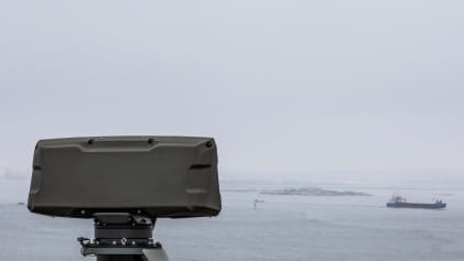 Ένα πυροβόλο των 30-40 χιλιοστών επάνω από το υπόστεγο των uav.